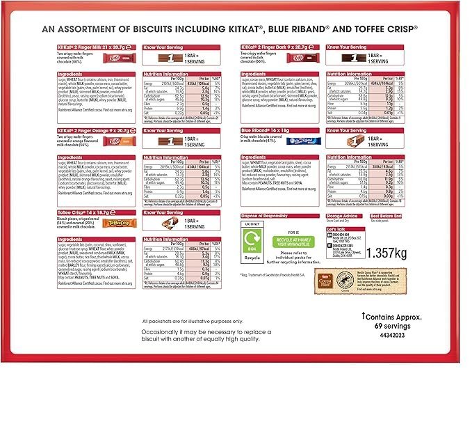 【New User Only】Nestlé Kitkat and Friends Big Biscuit Box | 69 x Chocolate Biscuit Bars – KitKat. Blue Riband. Toffee Crisp | Bulk Chocolate Box 1.357kg X2 boxes