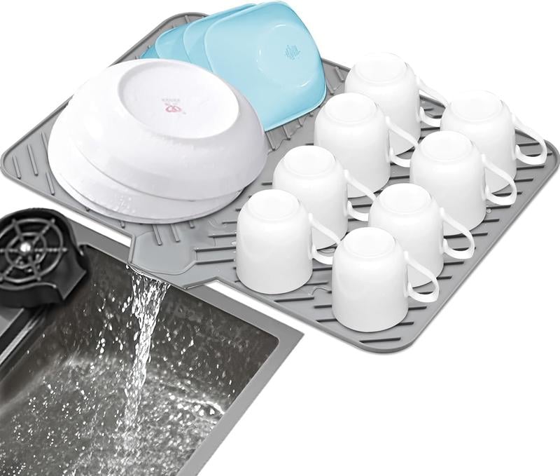🍽️ Silicone Large Size Dish Drying Mat·Built-in Drain Lip: This dish drainer mat features a built-in drain lip. ensuring efficient drainage of excess water. Perfect for keeping your kitchen counter dry and clean.